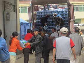 • 向地震災(zāi)民發(fā)放賑災(zāi)物資